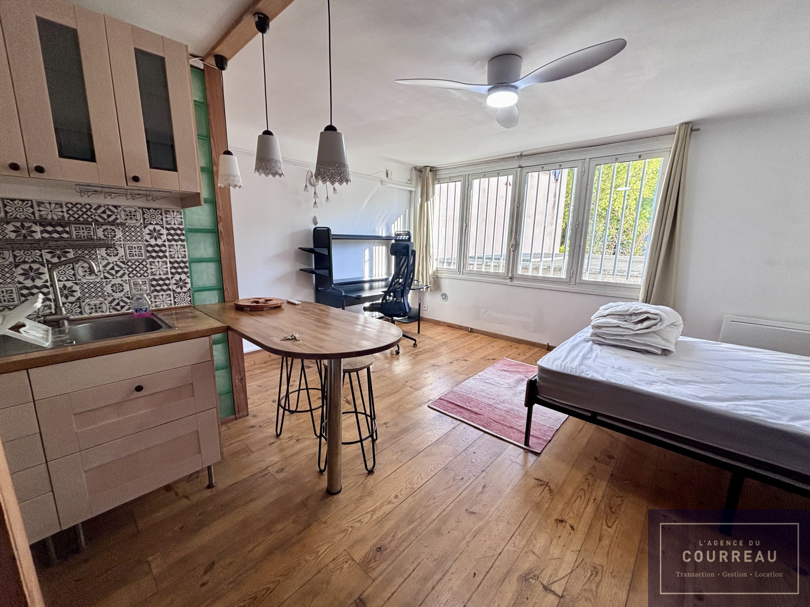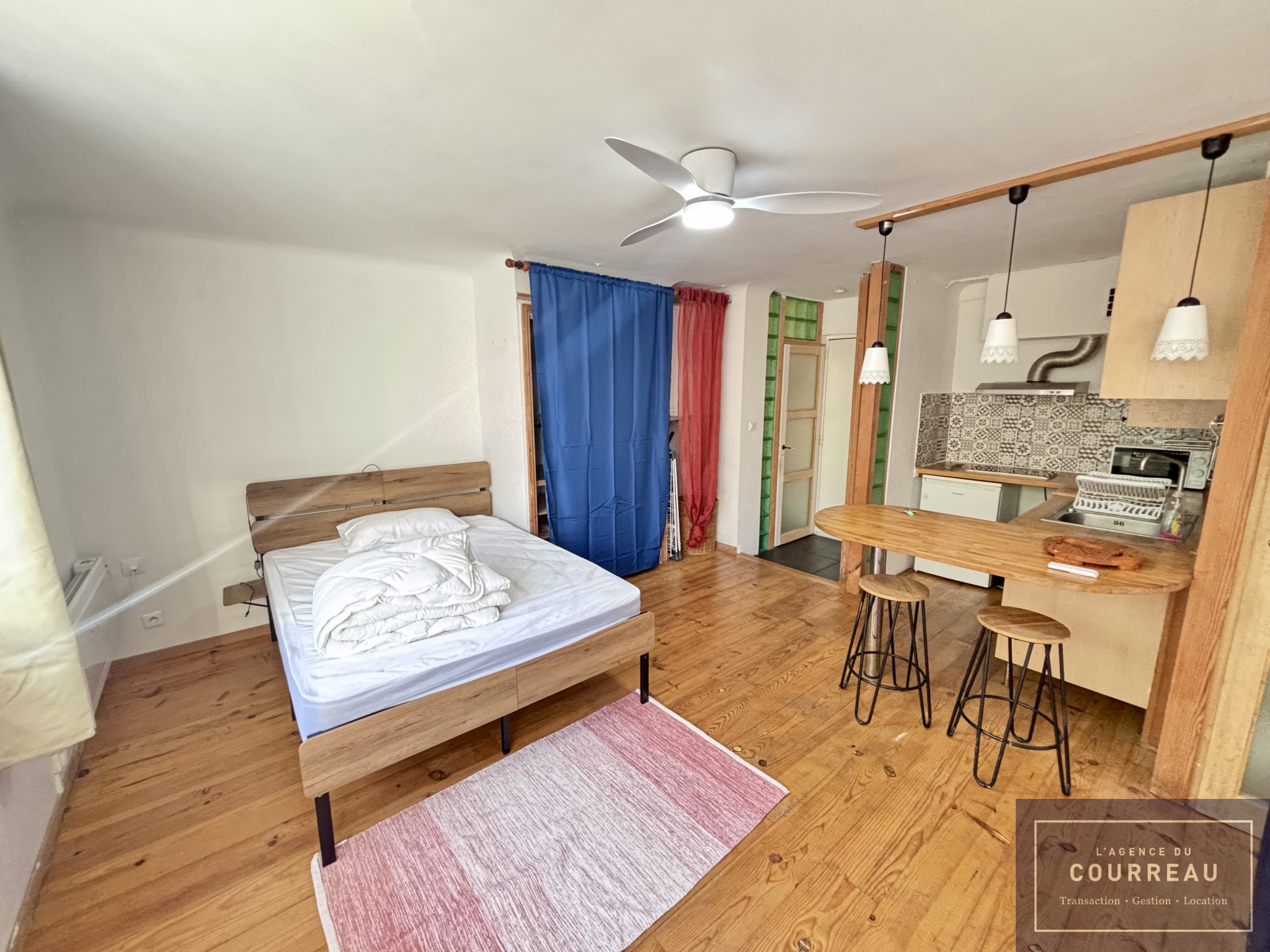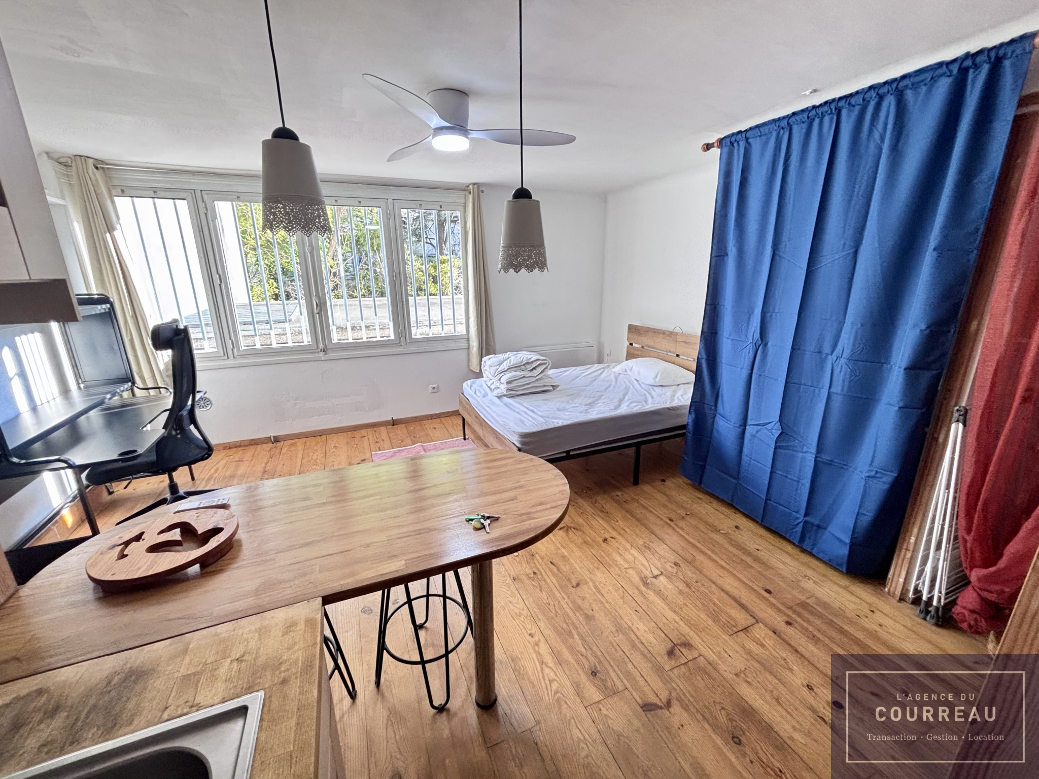 L'Agence du Courreau vous propose ce studio loué meublé de 25.37 m². Il se compose d'une entrée avec wc, d'un vaste et lumineux séjour avec cuisine et rangement ainsi que d'une salle d'eau.