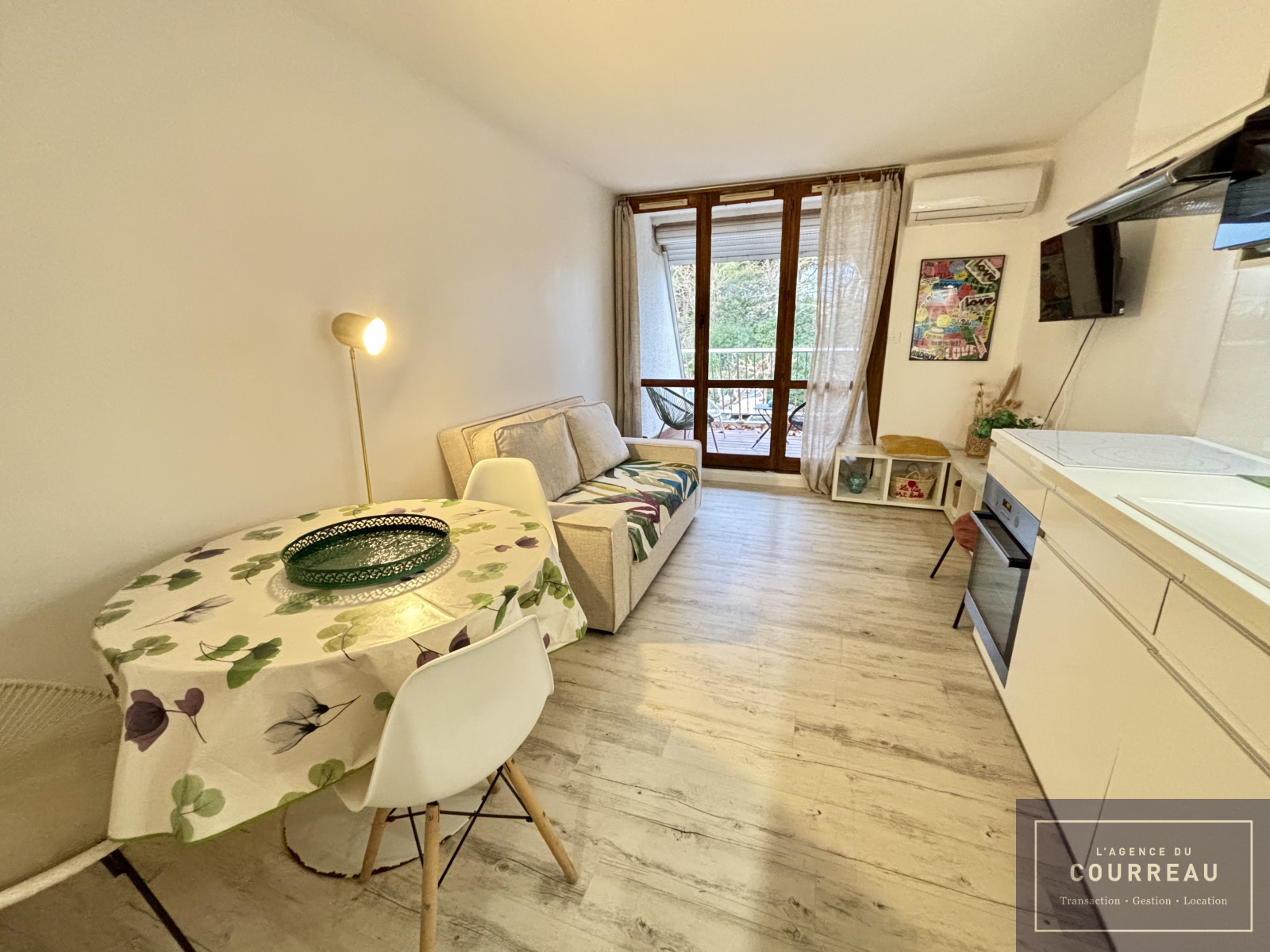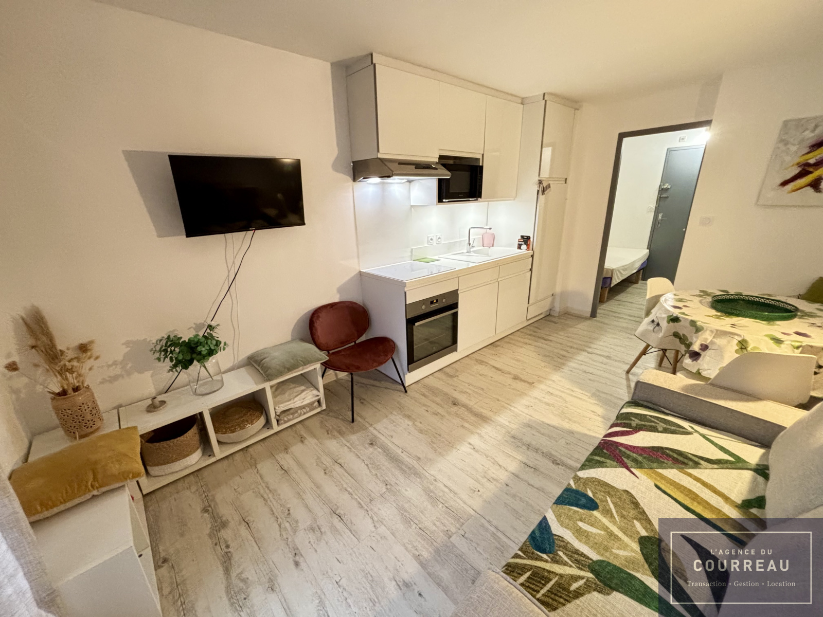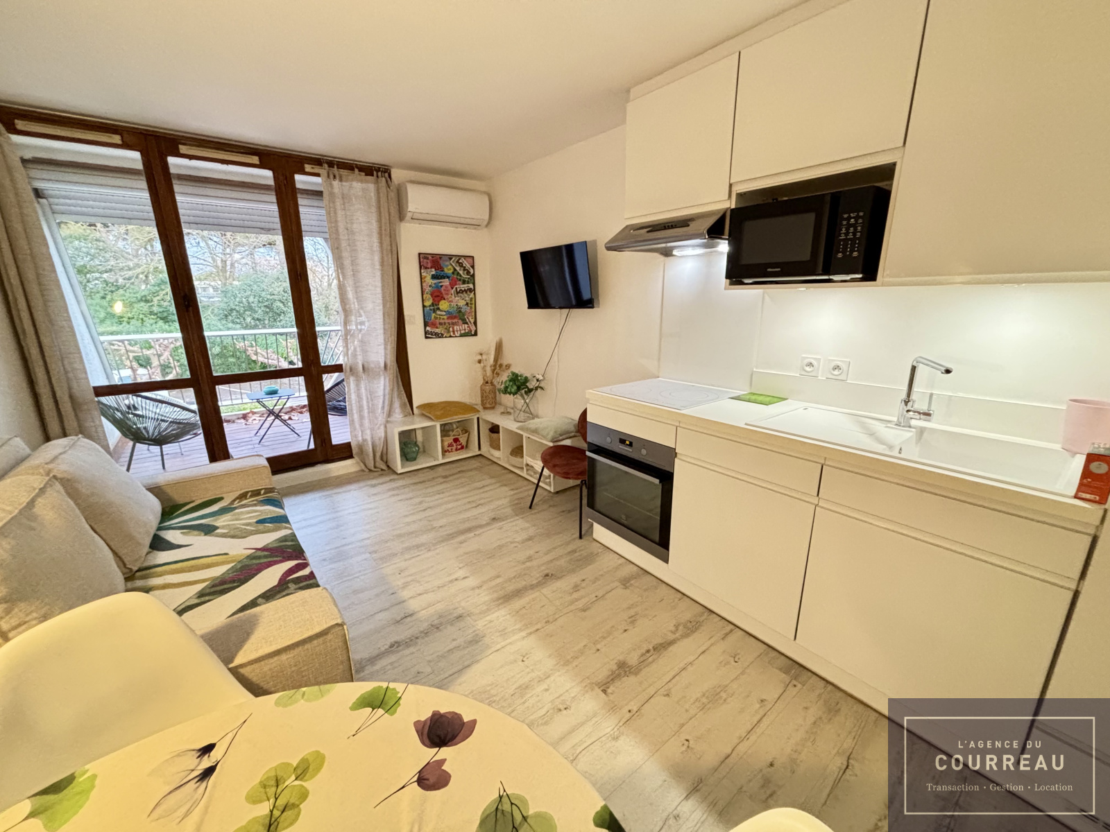 L'Agence du Courreau vous propose ce ravissant studio loué meublé de 20.93 m². Il se compose d'une entrée avec placards et lit, d'une salle d'eau avec wc et d'un vaste séjour avec cuisine équipée et canapé convertible attenante à une terrasse de 8 m².