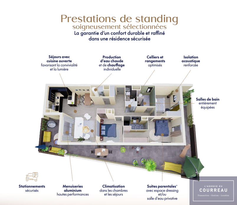 Composée de 17 appartements répartis sur trois niveaux, cette nouvelle résidence offre à chacun une atmosphère intimiste et un cadre de vie privilégié.