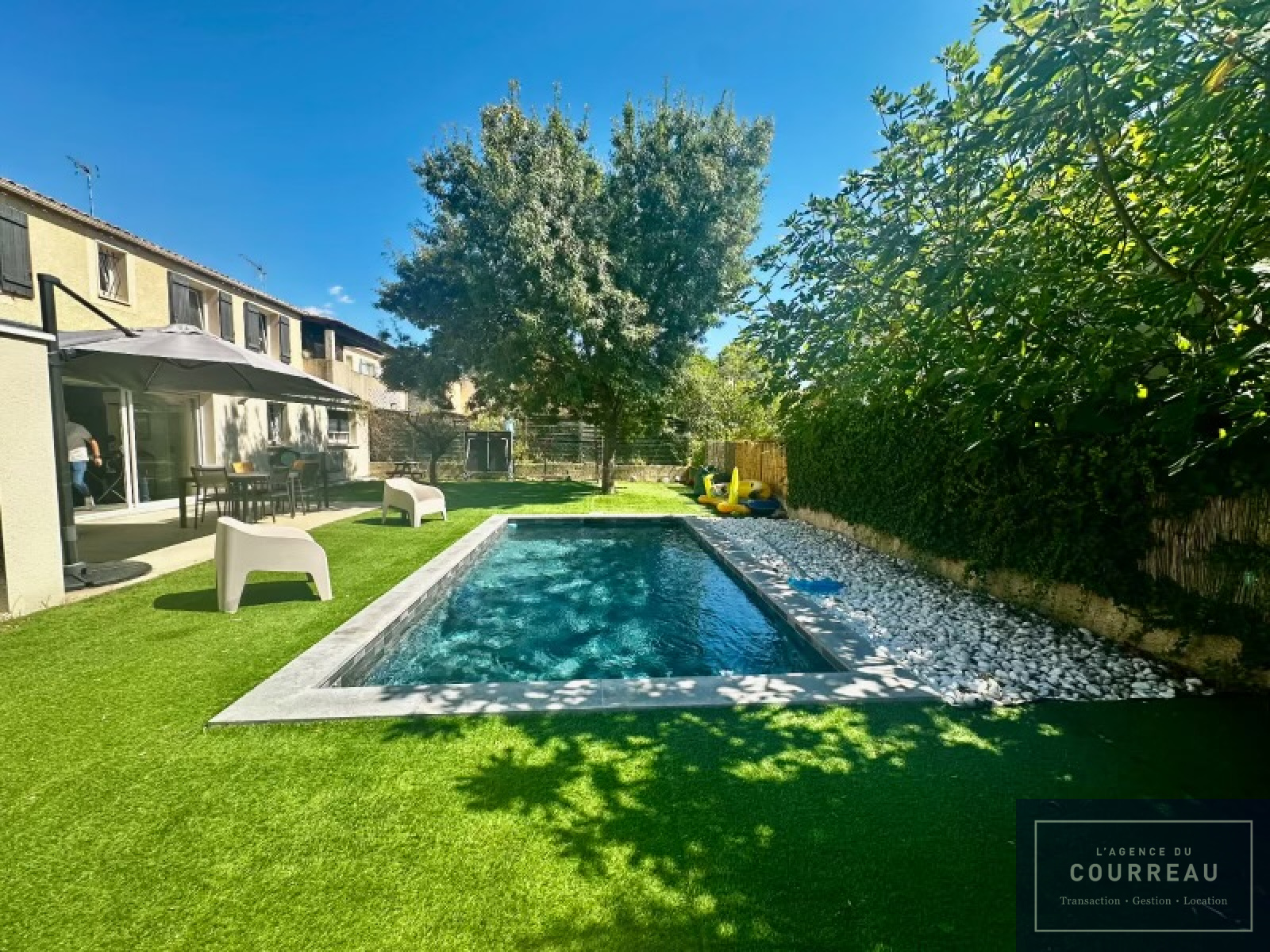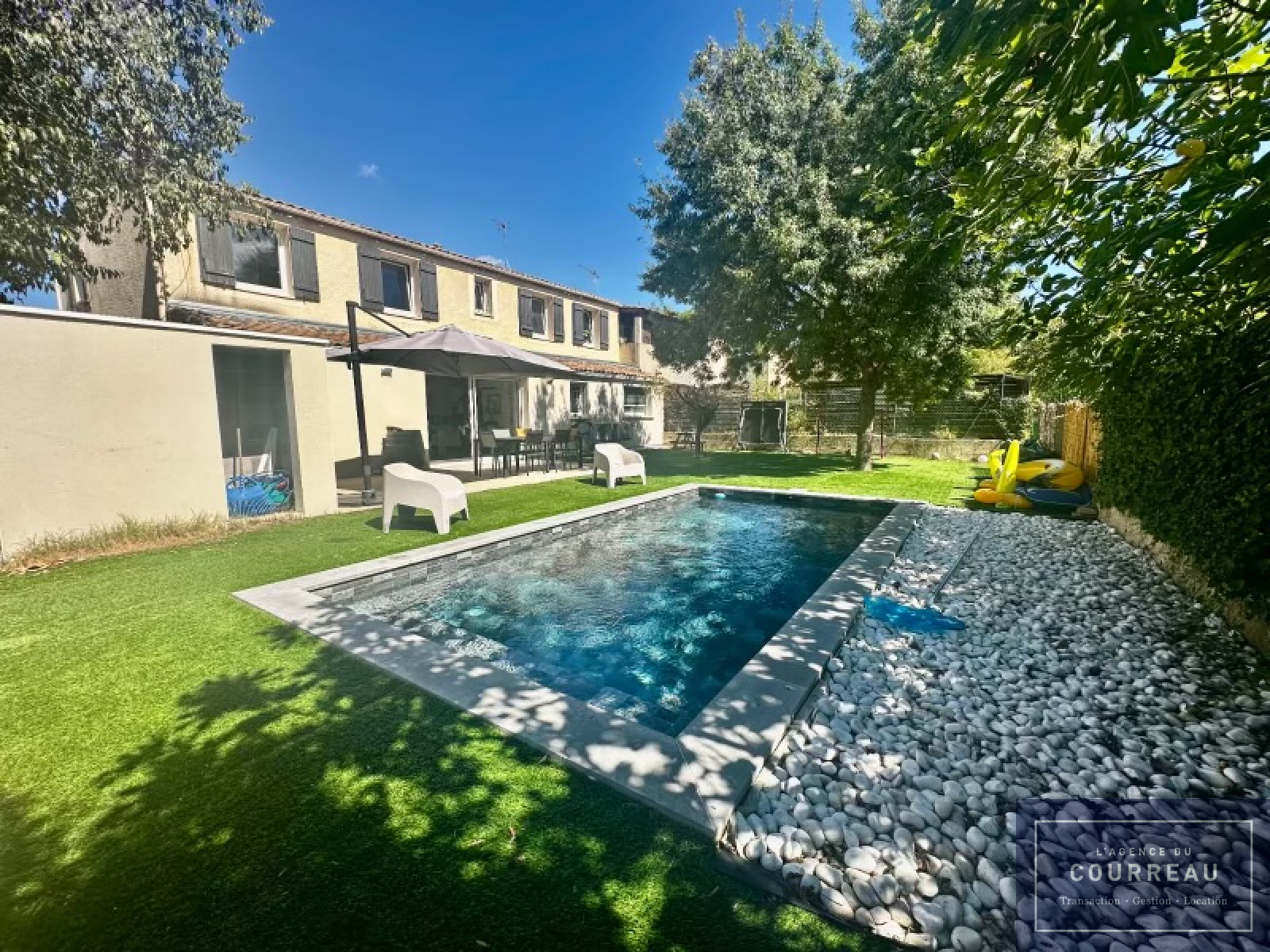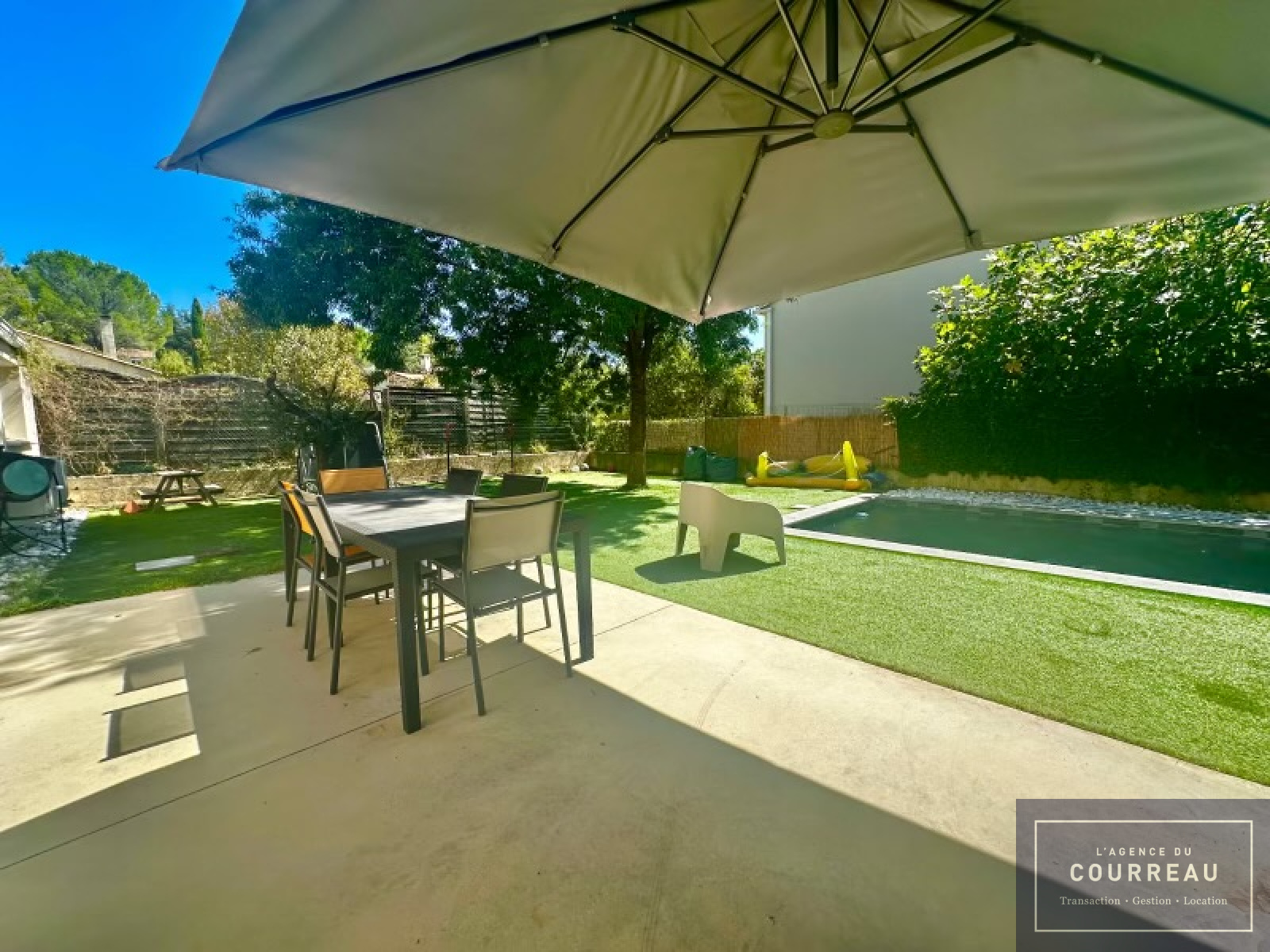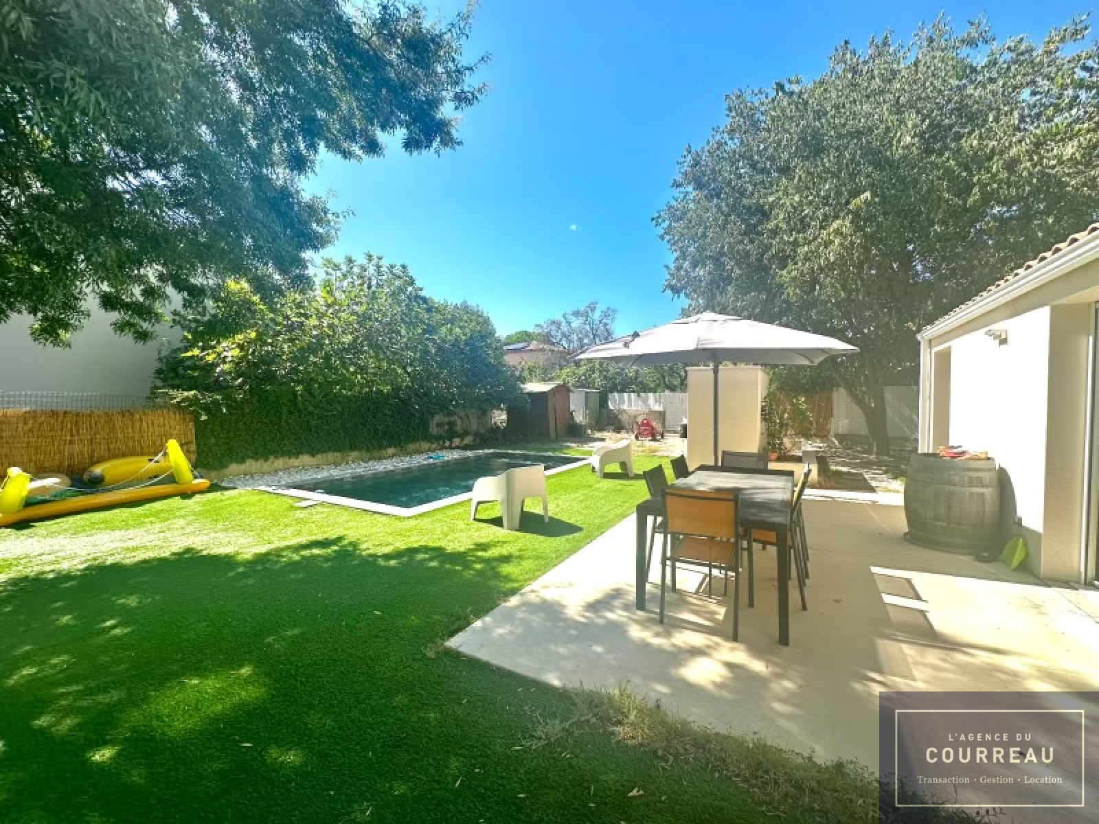 À l’extérieur, profitez d’un cadre de vie privilégié : une belle terrasse, une piscine, un boulodrome et un agréable jardin arboré, parfait pour se détendre et profiter des beaux jours.